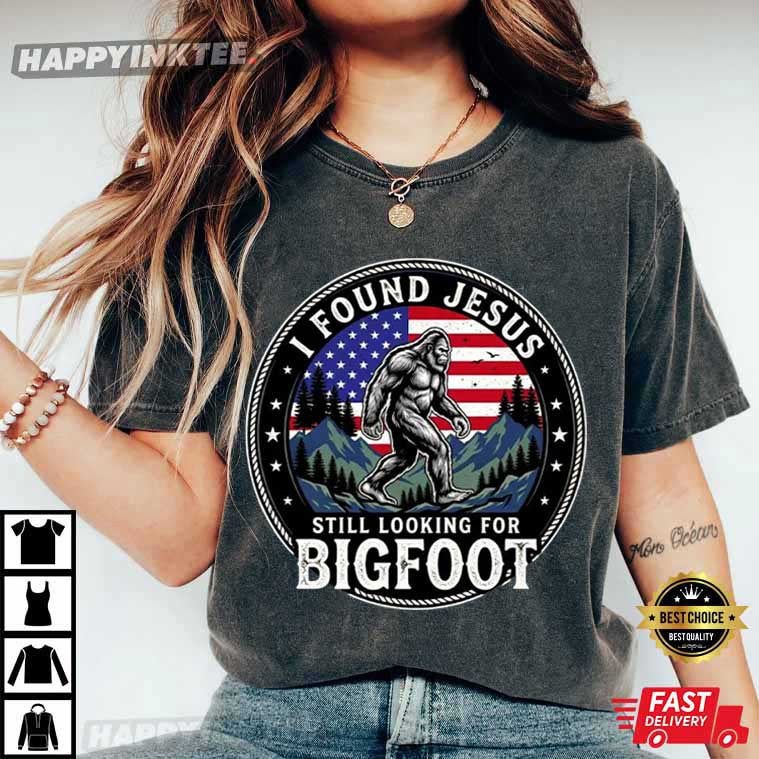 Bring humor, faith, and a touch of wilderness mystery together with the Retro I Found Jesus Still Looking Bigfoot Funny Christian T-Shirt—a bold, vintage-inspired design that’s equal parts meaningful and hilarious. The Sasquatch Christian comedy tee is the ideal fusion of fun and faith—proving that faith can be strong while your sense of humor stays even stronger — A standout piece for anyone who enjoys a good laugh with meaning behind it.