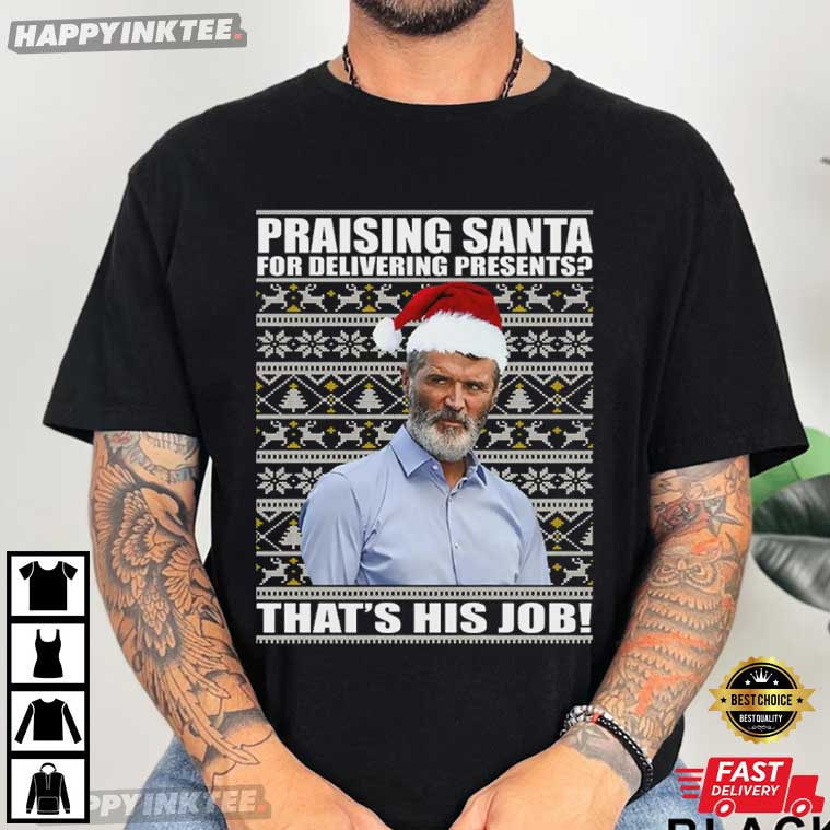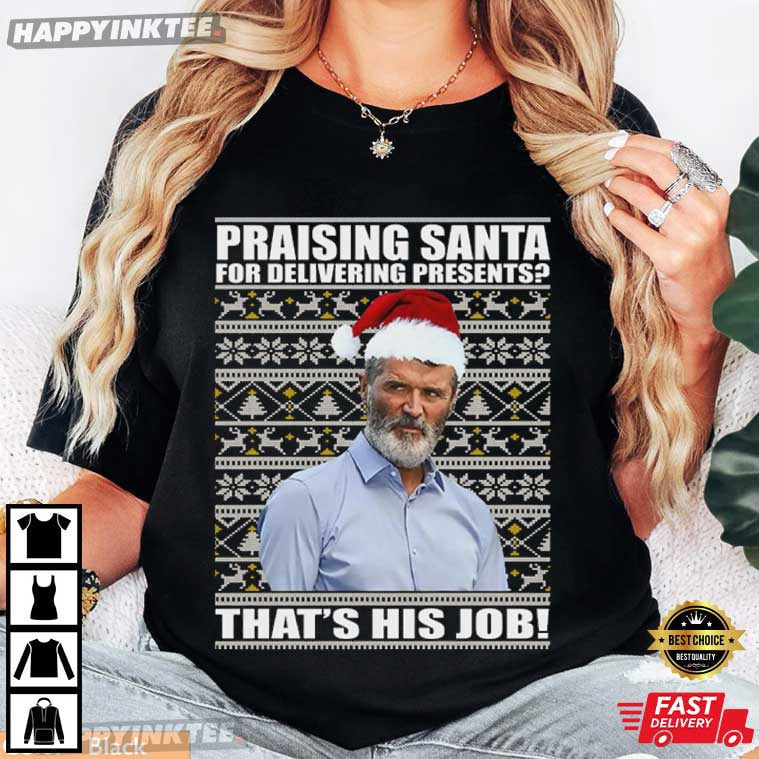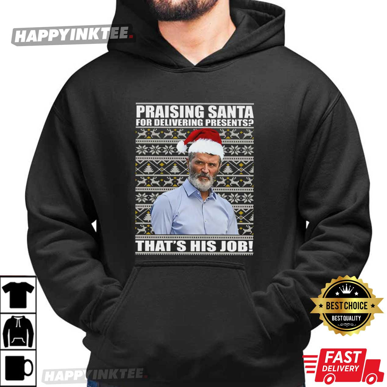 Roy Keane Praising Santa That's His Job Christmas Festive T-Shirt – funny christmas shirts, christmas sweat shirts