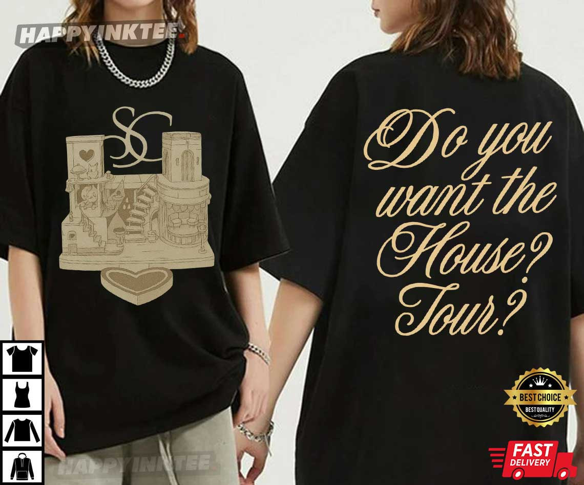 Step into the era of confidence and charm with this Sabrina Carpenter House Tour Fandom Gift Music Concert T-Shirt. With a chic architectural graphic influenced by her stage aesthetics on the front and the sophisticated “Do You Want The House Tour?” text on the back, this Sabrina Carpenter House Tour t-shirt perfectly embodies Sabrina’s brash yet idealistic personality. Made with soft, breathable cotton, it’s ideal for concert nights, fan meetups, or casual days when you want to rep your favorite artist in style.