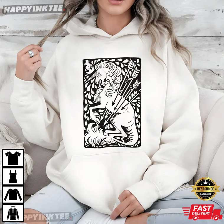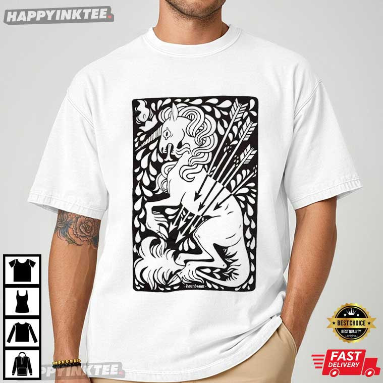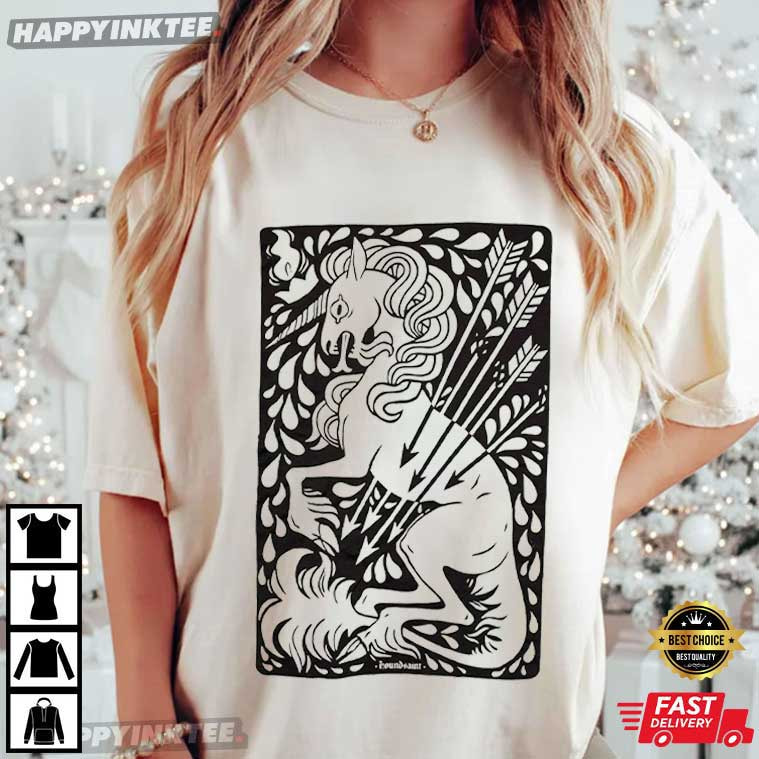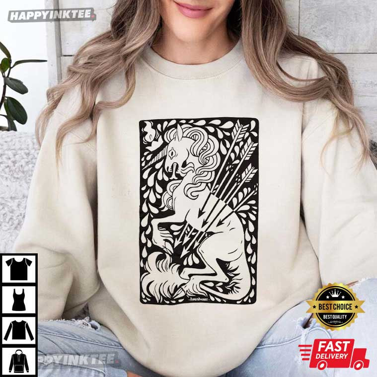 Soft magic meets quiet strength in the Sage Green Unicorn T-Shirt, a design that feels both mythical and modern. Illustrated in a bold, hand-carved style, the unicorn stands poised and powerful, pierced by arrows yet unbroken a visual metaphor for resilience, endurance, and inner grace. This Unicorn shirt is more than just imagination; it’s calm assurance you can wear —It’s great for folks who adore myths, symbols, and pretty, clean pictures.