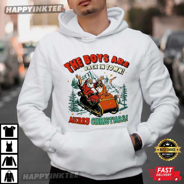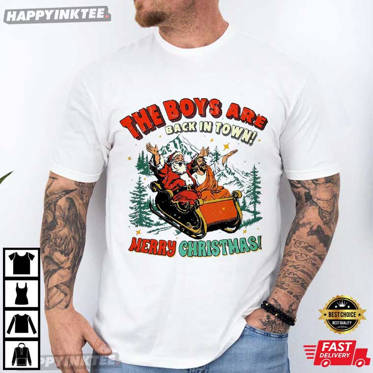 Santa And Jesus Merry Christmas Vintage Holiday T-Shirt