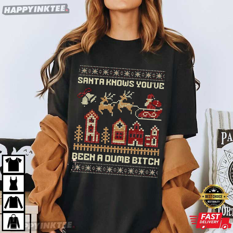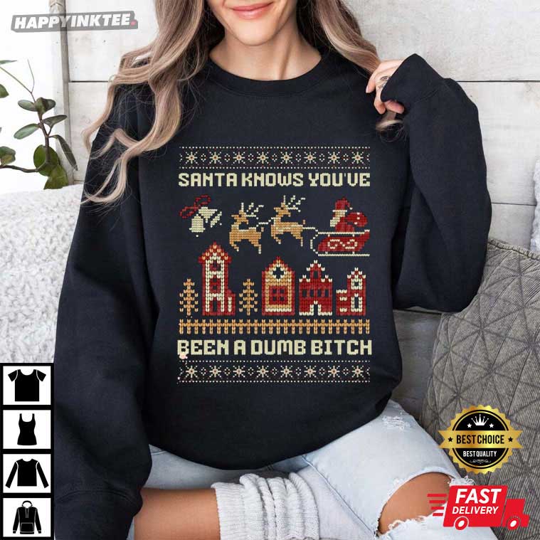 Santa Knows You’ve Been A Dumb Bitch Funny Christmas T-Shirt – funny christmas shirts, christmas sweat shirts