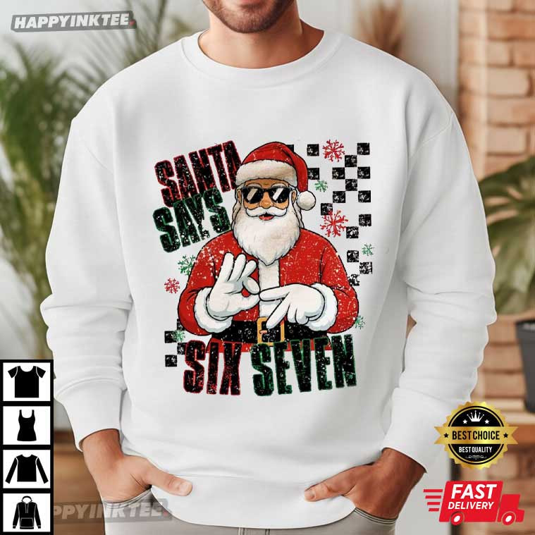 Santa Says Six Seven Christmas Cool Santa Meme T-Shirt – funny christmas shirts, christmas sweat shirts