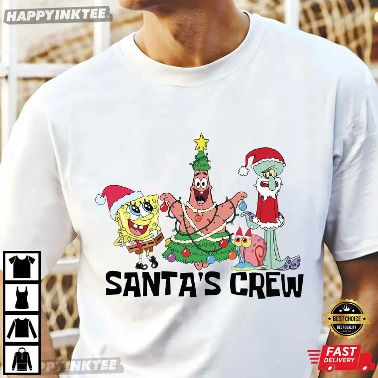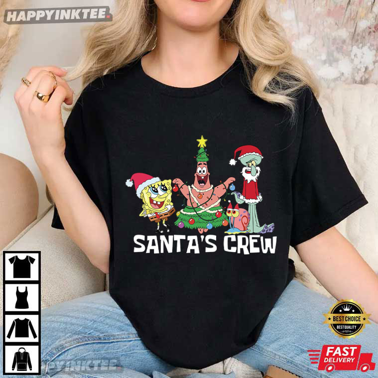 Santa’s Crew SpongeBob SquarePants Funny Cartoon Christmas Gift T-Shirt – funny christmas shirts, christmas sweat shirts