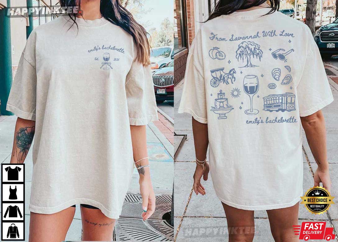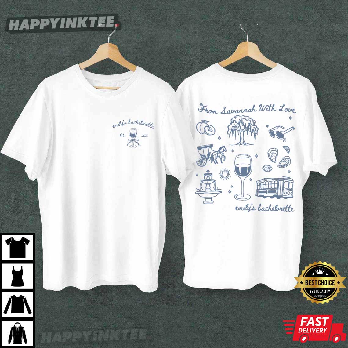 Our custom Savannah bachelorette shirt, customized with the bride’s name and event details, is a cool and stylish way to bring your squad together while checking out Savannah’s lively nightlife and southern charm.