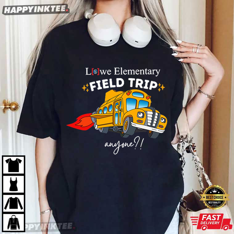 The School Bus Lowe Elementary Field Trip T-Shirt brilliantly captures the excitement of learning outside of school. The design contains a cartoon-style school bus that seems like it’s taking off like a rocket with the amusing tagline “Field Trip, anyone?!” It talks about how important it is to be curious, work together, and have fun with those great school days.