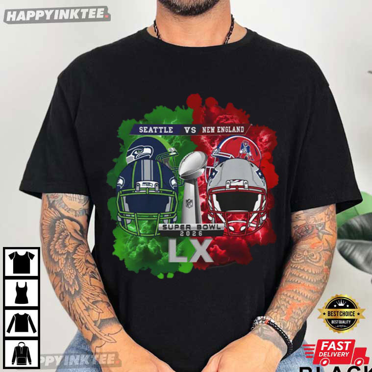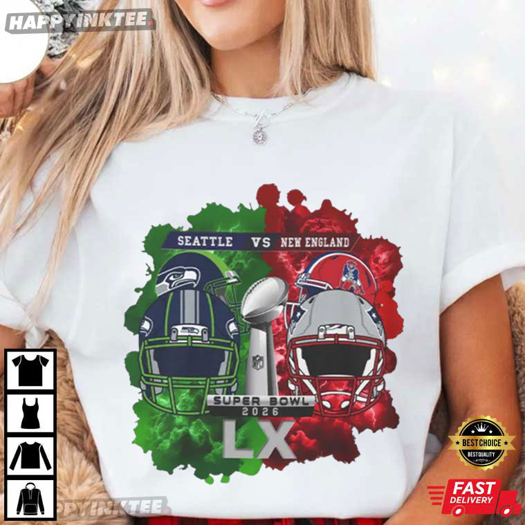 Seahawks Vs Patriots 2026 Super Bowl Football T-Shirt – custom football jersey, personalized football jersey, football jersey custom design, vintage nfl shirts, nfl player t-shirts