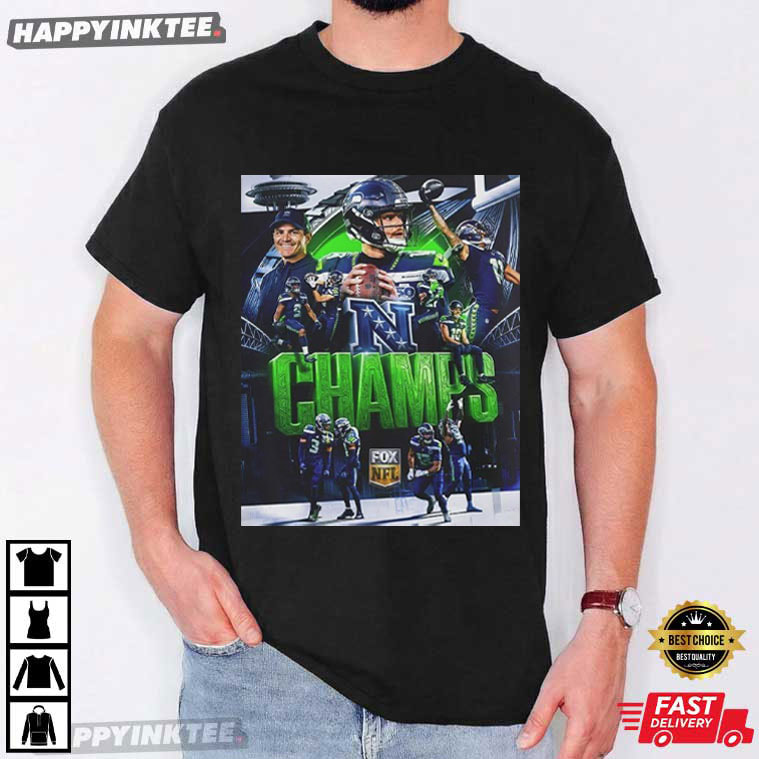 Seattle Seahawks 2025 NFL NFC Champions Super Bowl LX T-Shirt – custom football jersey, personalized football jersey, football jersey custom design, vintage nfl shirts, nfl player t-shirts