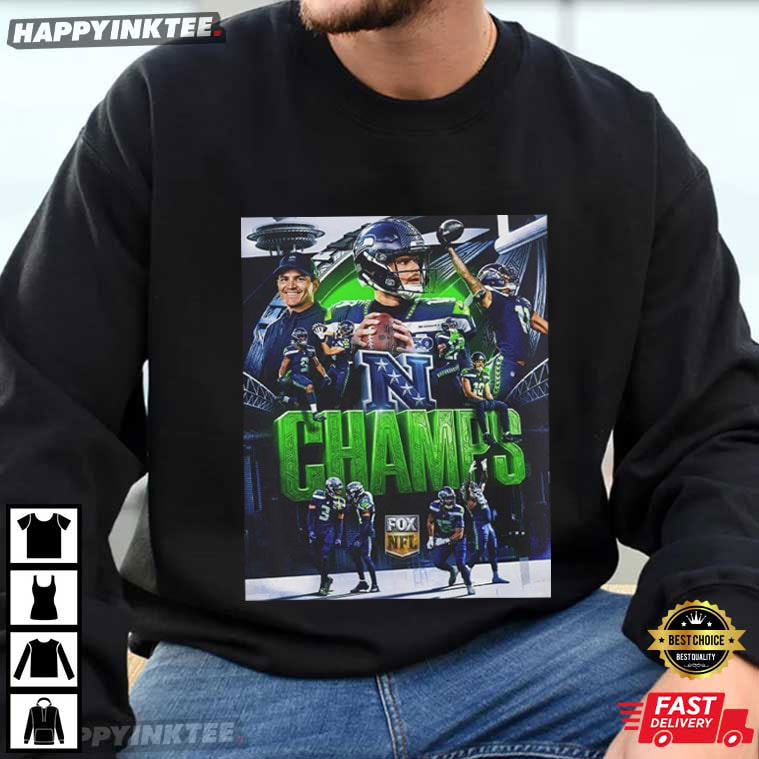 This Seattle Seahawks 2025 NFL NFC Champions shirt commemorates the Seattle Seahawks as the 2025 NFC Champions, a title they earned by punching their ticket to Super Bowl LX by defeating the Los Angeles Rams 31–27 in the NFC Championship Game.