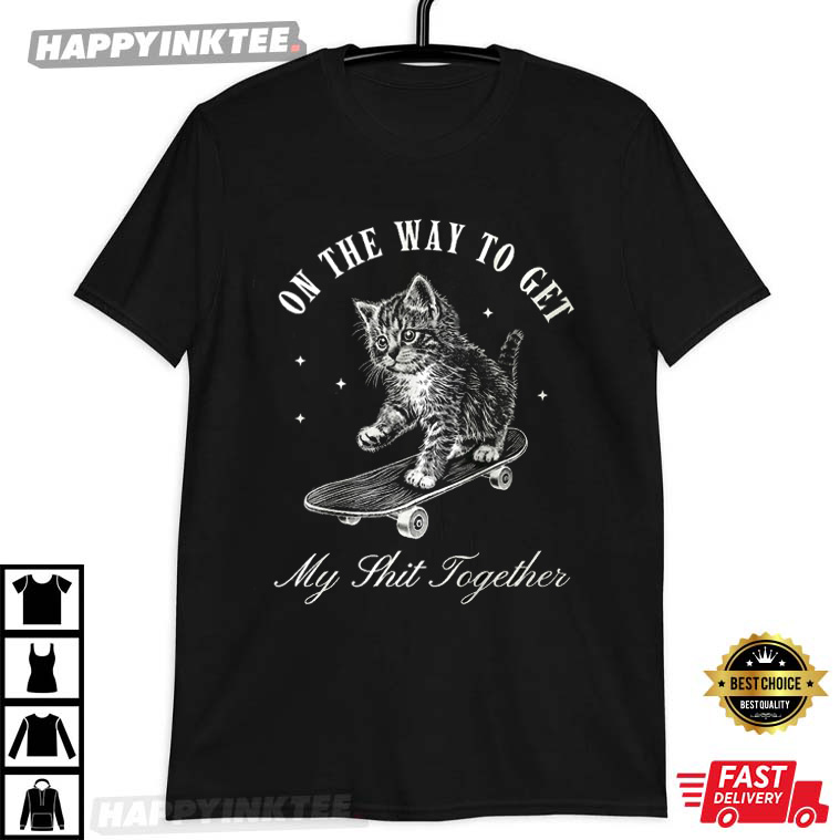 Skateboard Cat Funny On The Way To Get My Shit Together T-Shirt – vintage graphic t shirts, unique graphic t shirts