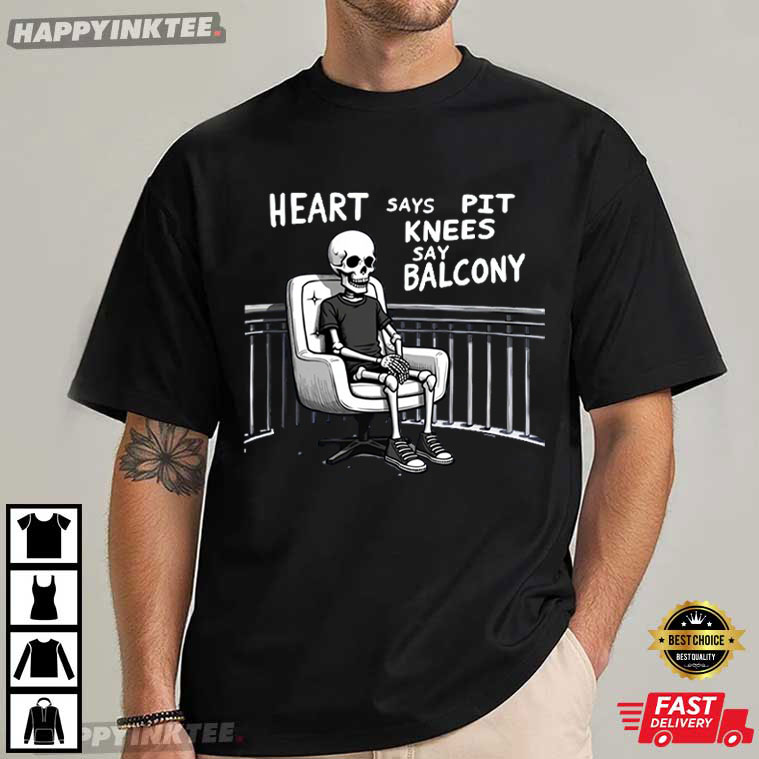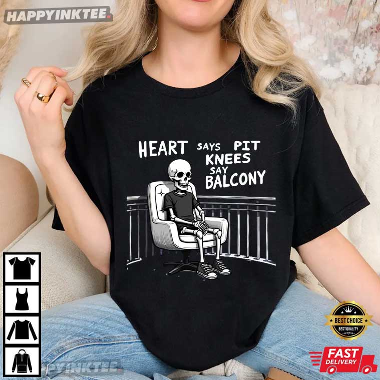The Skeleton Heart Says Pit Knees Say Balcony Absurd Meme T-Shirt brilliantly describes the moment every concertgoer reaches: the spirit is willing, but the knees have filed a formal complaint. This shirt is funny, self-aware, and a little dark. It turns “aging with attitude” into a joke you can wear.