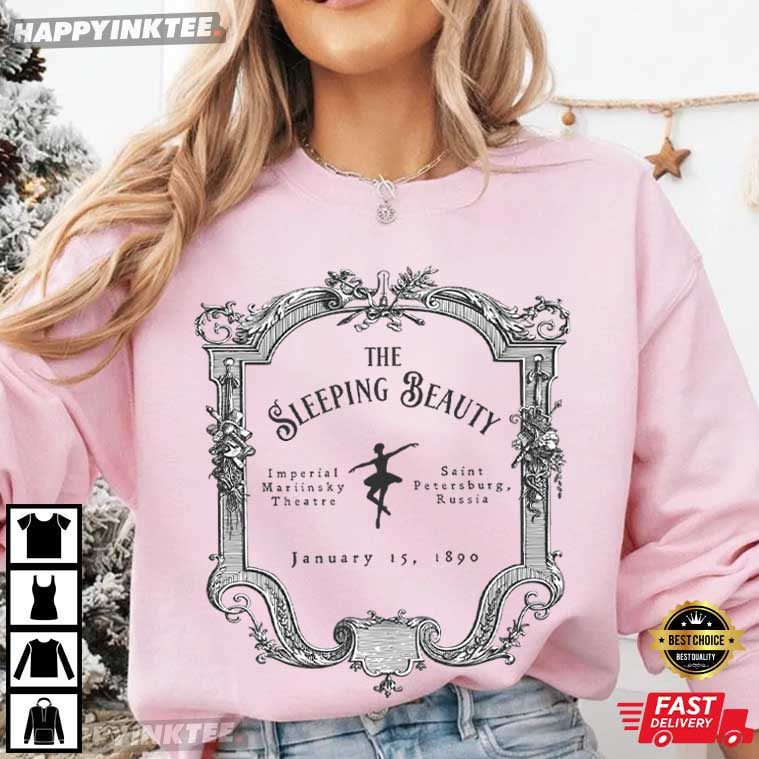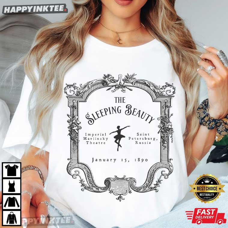 The Sleeping Beauty Ballet Sleeping Beauty Performance Ballerina Gift T-Shirt is an elegant tribute to one of the most beloved classical ballets in the world — Motivated by the historic performance of “The Sleeping Beauty” in Saint Petersburg, Russia’s Imperial Mariinsky Theatre, this beautifully designed graphic tee celebrates the grace, artistry, and timeless magic of classical ballet.