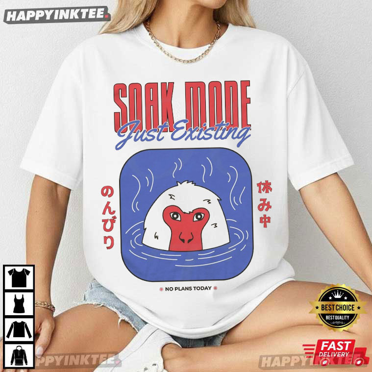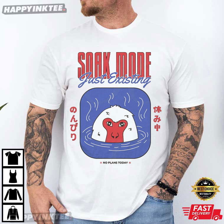 Soak Mode Just Existing Snow Monkey Japanese Hot Spring T-Shirt – vintage graphic t shirts, unique graphic t shirts