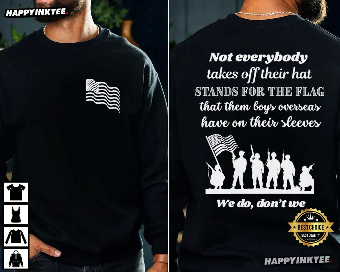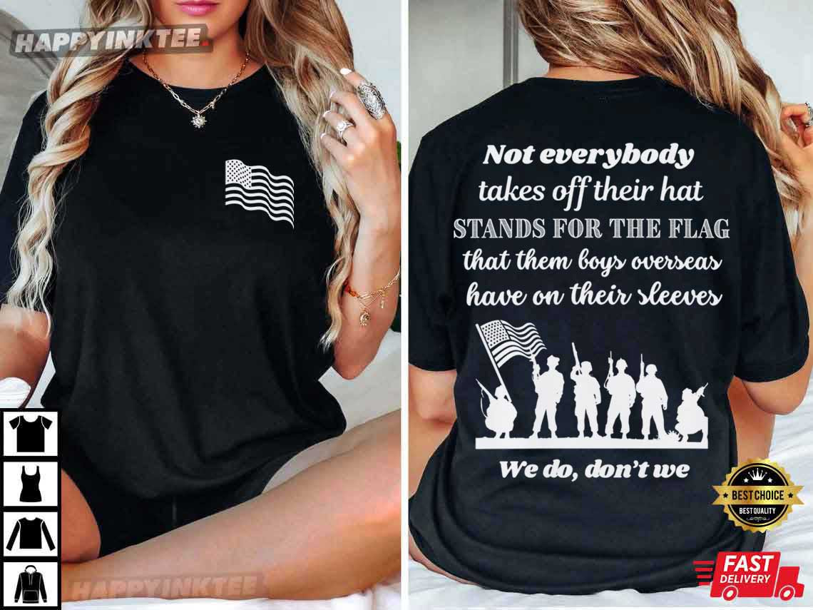 The Stands For The Flag America Military Support T-Shirt is a potent patriotic design made to recognize the commitment and sacrifice made by the men and women who serve in the military forces.. Featuring a bold American message and a striking silhouette of soldiers standing proudly beside the flag, this America Military shirt reflects the deep respect many Americans feel toward the military and those who defend the nation.