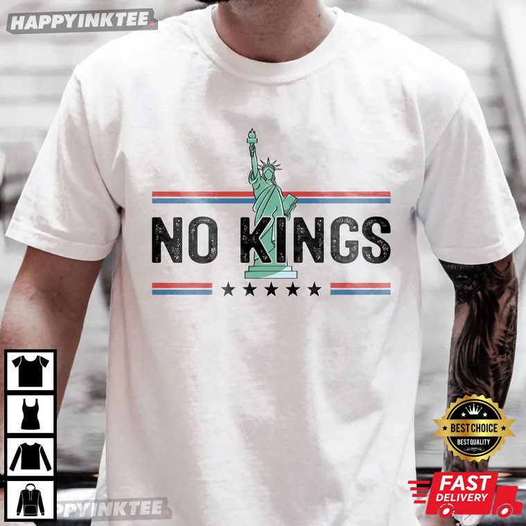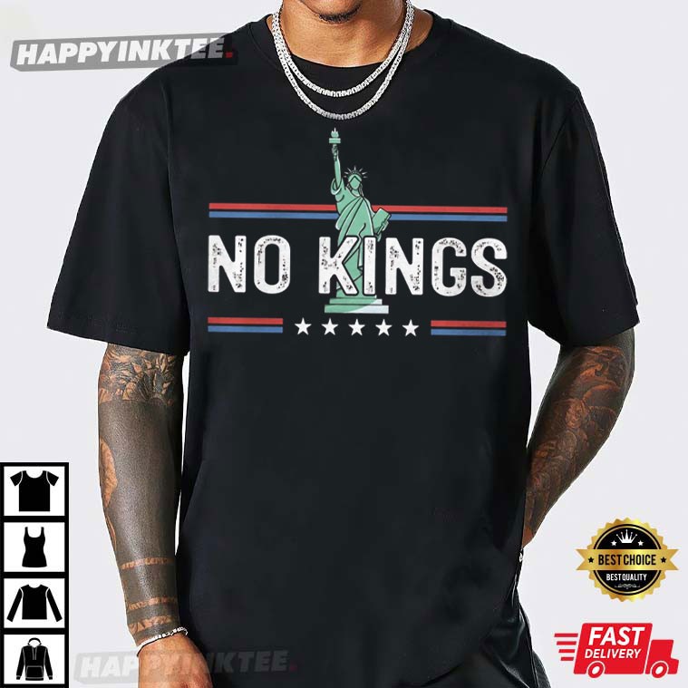 “No Kings In America” alludes directly to the Declaration of Independence in 1776 and the American Revolution, when the Thirteen Colonies rejected British monarchical rule under King George III. The title indicates this shirt is an “Anti Trump” statement, implying that Trump’s political influence or leadership style is being criticized by the “No Kings” phrase. In 2025, following his 2024 election win (as he is the current U.S. President), some may view his policies or demeanor as authoritarian, prompting comparisons to a “king-like” figure.