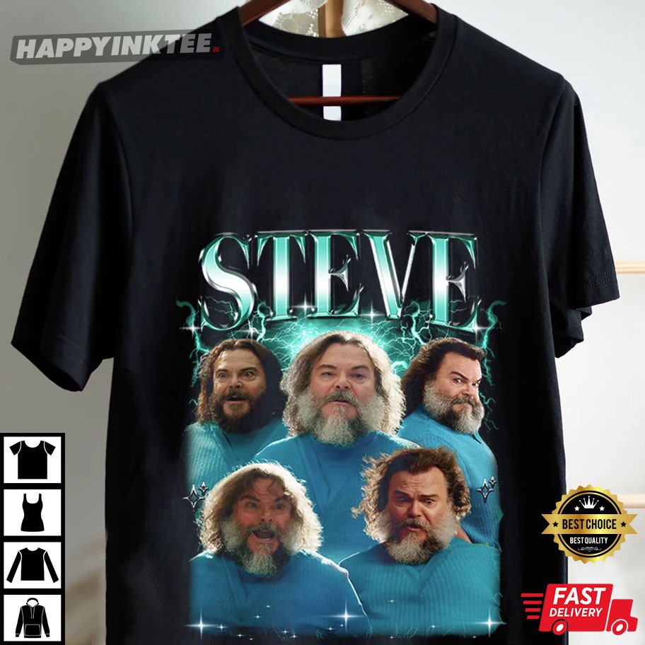 Steve is the main protagonist of the 2025 film A Minecraft Movie. Adapted from Mojang Studios’ iconic sandbox game “Minecraft” and portrayed by Jack Black, Steve is recast as a once-unknown doorknob salesman who becomes a legendary hero after he falls into the Overworld. Steve, who is well-known for his memorable catchphrases and blocky creativity, leads a team in an effort to prevent the collapse of the Minecraft world. Perfect for gamers, movie buffs, and fans of Jack Black’s wild performance, this Steve In Minecraft Movie T-Shirt celebrates the blockbuster that grossed $163 million in its opening weekend.