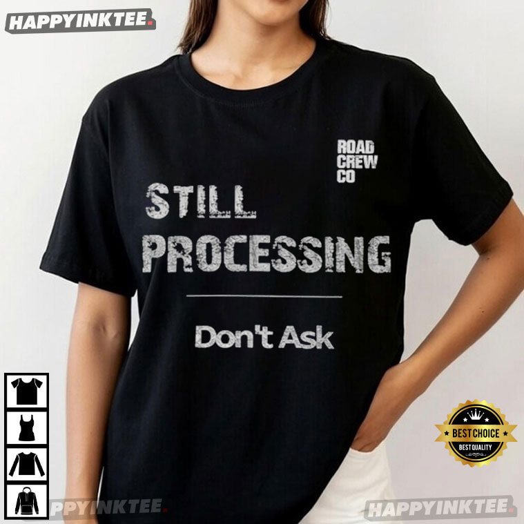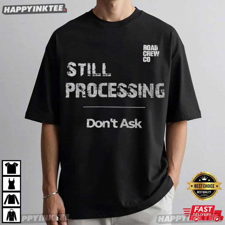 This design has an immediately relatable quality. The phrase “Still Processing – Don’t Ask” feels like a quiet nod to those moments when life gets a little overwhelming, confusing, or just… too much to explain. Instead of loud graphics or flashy visuals, This existential humor shirt is delicate and incredibly expressive, leaning toward minimalist existential humor.