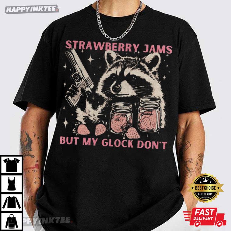 Strawberry Jams But My Glock Won’t Raccoon Meme T-Shirt