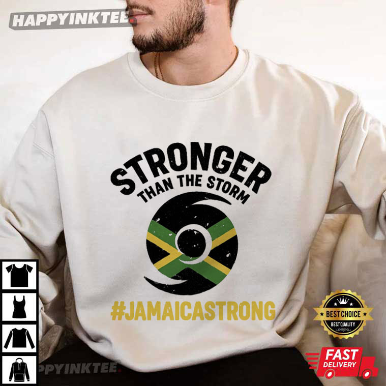 Stronger Than the Storm Jamaica Hurricane Melissa Support Relief T-Shirt – graphic t shirts vintage, retro graphic t shirts, unique graphic t shirts, retro tee shirts, vintage 80s t shirts, custom apparel