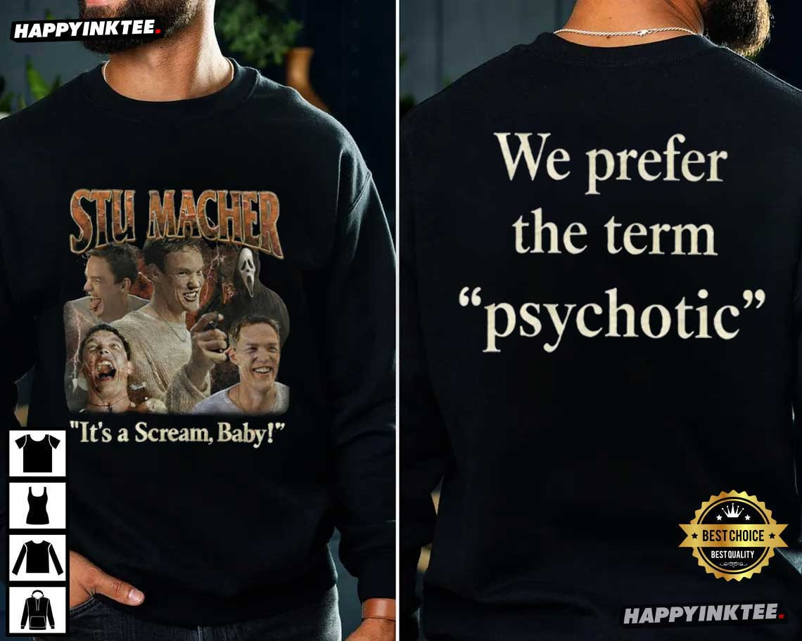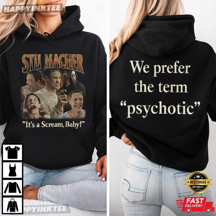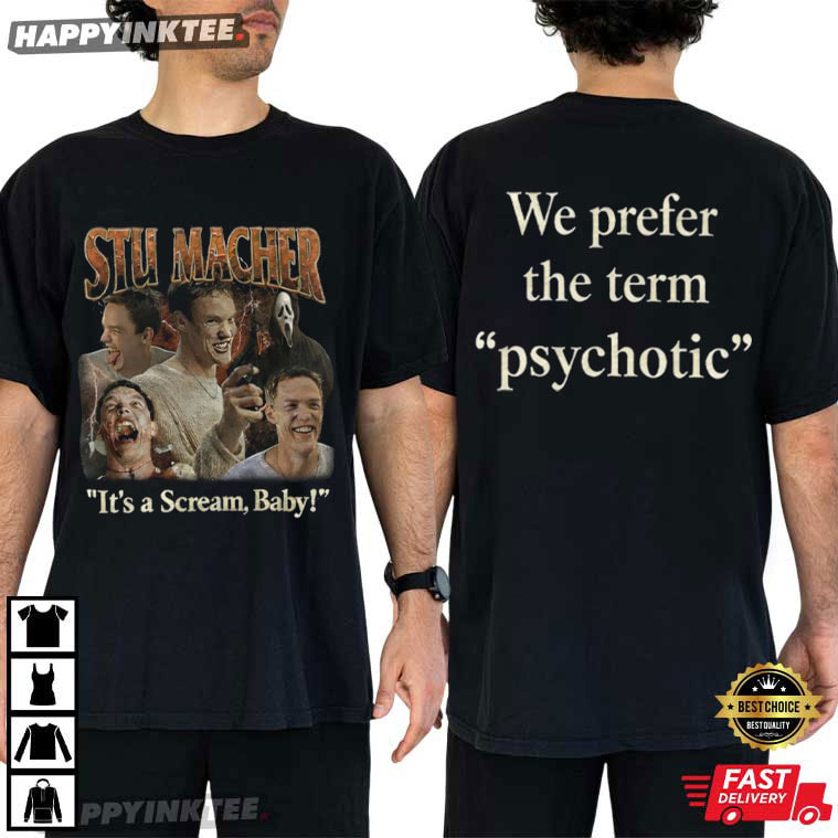 The Stu Macher It’s a Scream Baby Scream Movie Graphic T-Shirt is a love letter to peak 90s slasher energy—loud, unhinged, and endlessly quotable — Inspired by Stu Macher from the iconic horror film Scream, this Scream Movie tee celebrates one of the most chaotic and memorable villains in horror movie history. This isn’t subtle fandom. It’s loud, proud, and meant for people who quote horror movies casually.