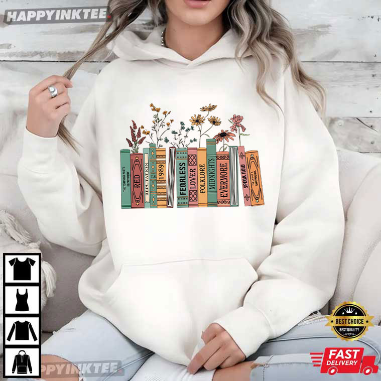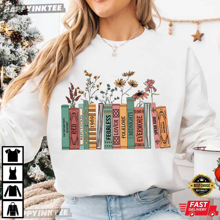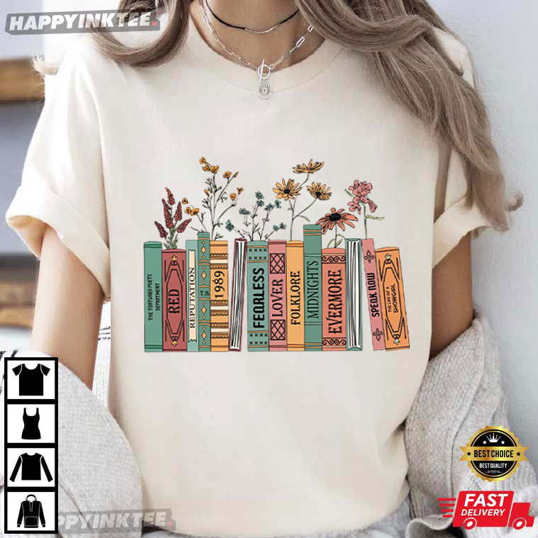 Taylor Swift Albums As Books Trendy Floral Bookish T-Shirt – music t shirts, graphic band shirts