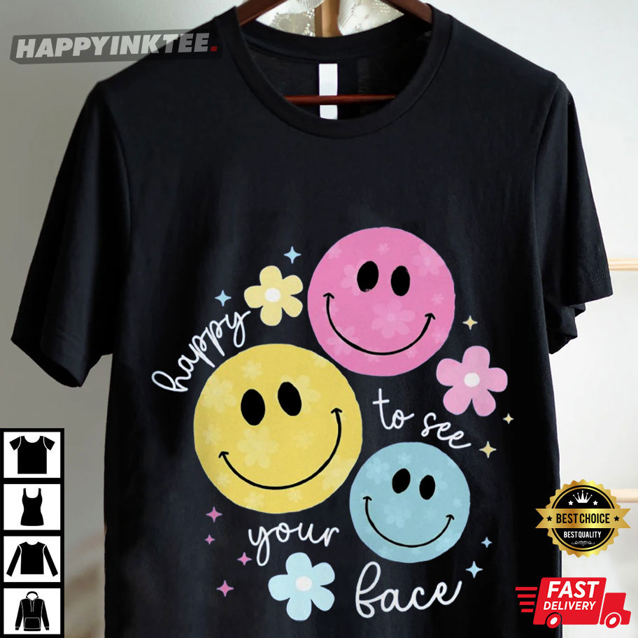 Teacher Back To School Happy To See Your Face T-Shirt – teacher shirts, kindergarten t shirts for teachers
