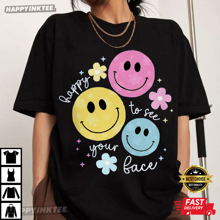 This Teacher Back To School Happy To See Your Face T-Shirt is a fun and uplifting way for any teacher to greet their students as they head back to class.