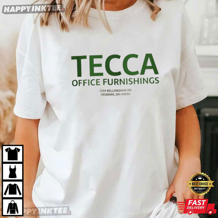 People who like Tim Robinson’s strange comedy will get the joke right away when they see this Tecca Office Furnishings Parody T-Shirt. The design is meant to be straightforward and serious, with classic block letters spelling out “TECCA OFFICE FURNISHINGS” with a random, very precise address underneath. The joke works because it seems too corporate; it looks like a boring office uniform from a place that shouldn’t exist.