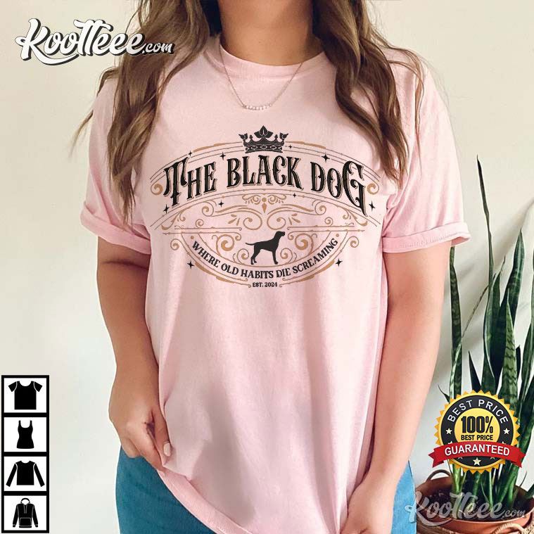Check out our The Black Dog Where Old Habits Die Screaming T-Shirt and celebrate the lyrical brilliance of Taylor Swift‘s The Tortured Poets Department!