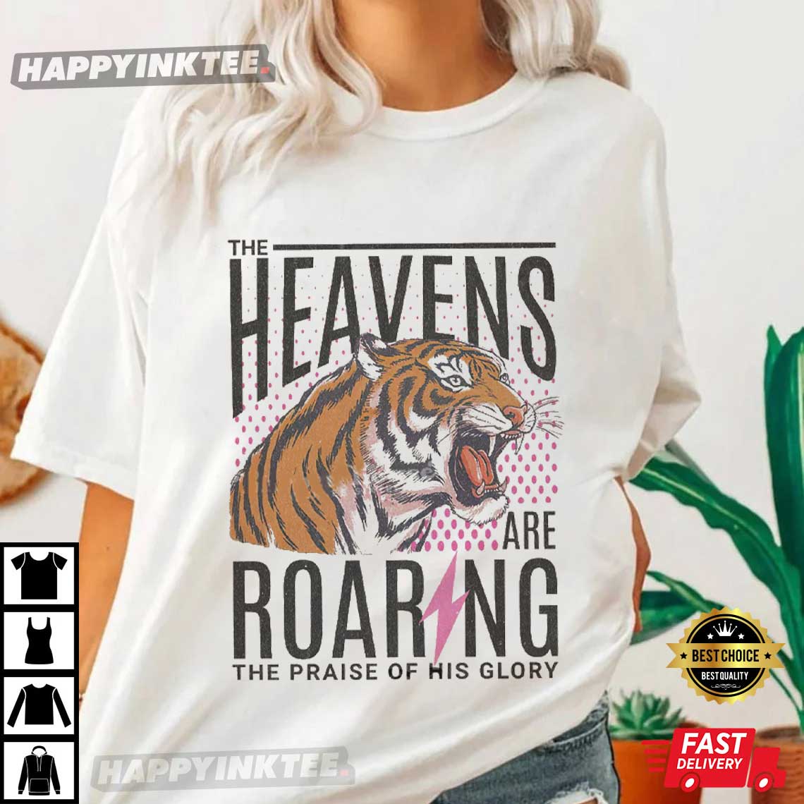 That feeling you get when the choir strikes that one note that makes your skin crawl? Or when you sing your favorite worship song in the car with the windows down and all of a sudden you sound like you could tour with Hillsong? Yes, this The Heavens Are Roaring Christian Bible Verse T-Shirt gives out that type of intensity.