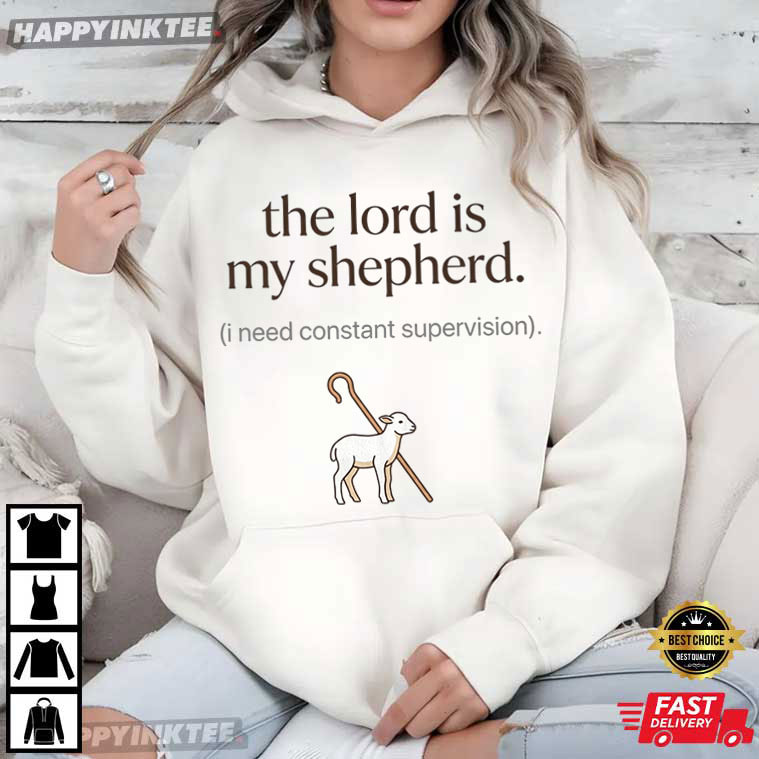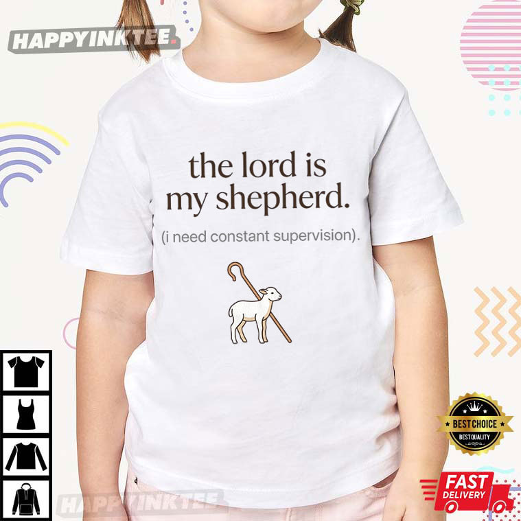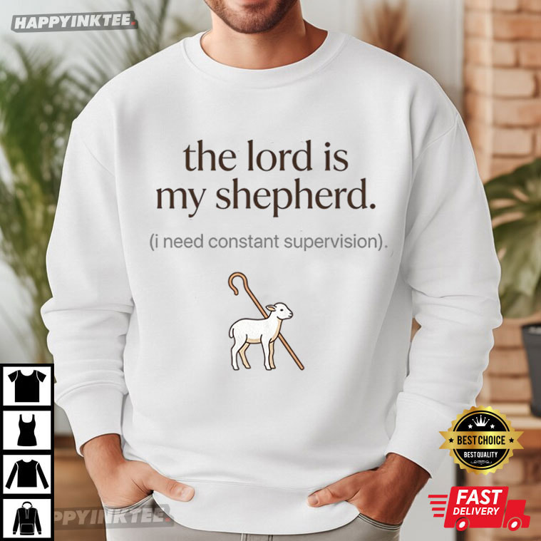 The Christian Religious shirt features the well-known line from Psalm 23: “The Lord is my shepherd”, a verse that stands for direction, security, and faith in God. It is one of the most reassuring and well-known passages in Christianity. Right below, the phrase “(i need constant supervision)” adds a humorous, human touch — admitting that everyone occasionally needs direction — It’s a gentle reminder that faith isn’t about perfection, but about relying on something greater than ourselves.