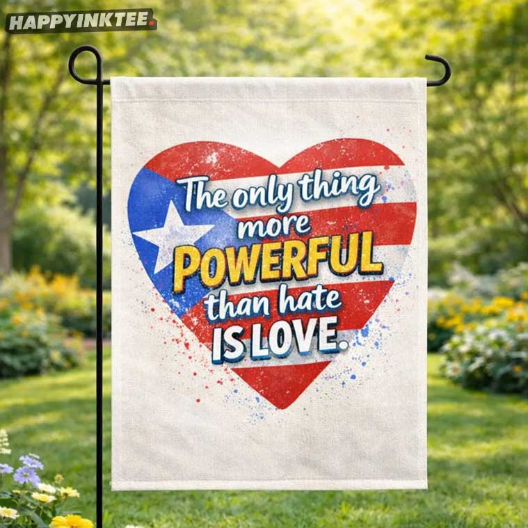 Make a bold yet uplifting statement with The Only Thing More Powerful Than Hate Is Love Human Rights Flag. Designed with a vibrant heart motif inspired by patriotic colors and a powerful message of compassion, this garden flag transforms any outdoor space into a symbol of unity, equality, and hope.