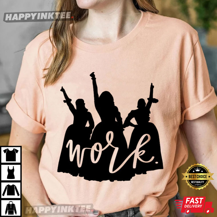 This Hamilton Schuyler Sisters shirt showcases the powerful image of Angelica, Eliza, and Peggy with their fists up, along with the striking word “Work”. It really captures one of the most memorable moments from the show. It is a total must-have for anyone who digs history, music, and strong female vibes.