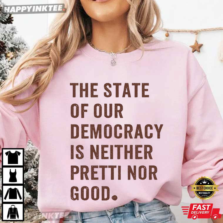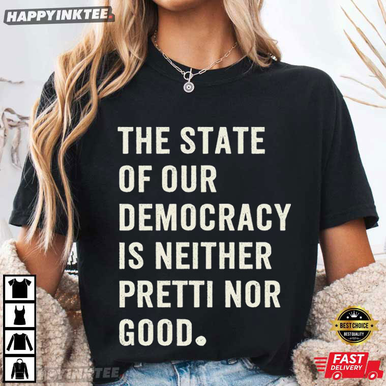 The State Of Our Democracy Is Neither Pretti Nor Good Abolish ICE T-Shirt – vintage graphic t shirts, unique graphic t shirts