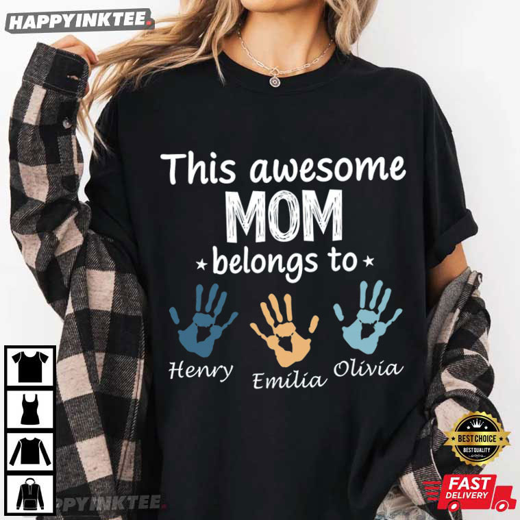 This Awesome Mom Belongs To Custom Kids Names Mother Gift T-Shirt