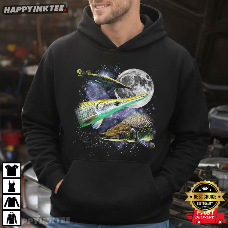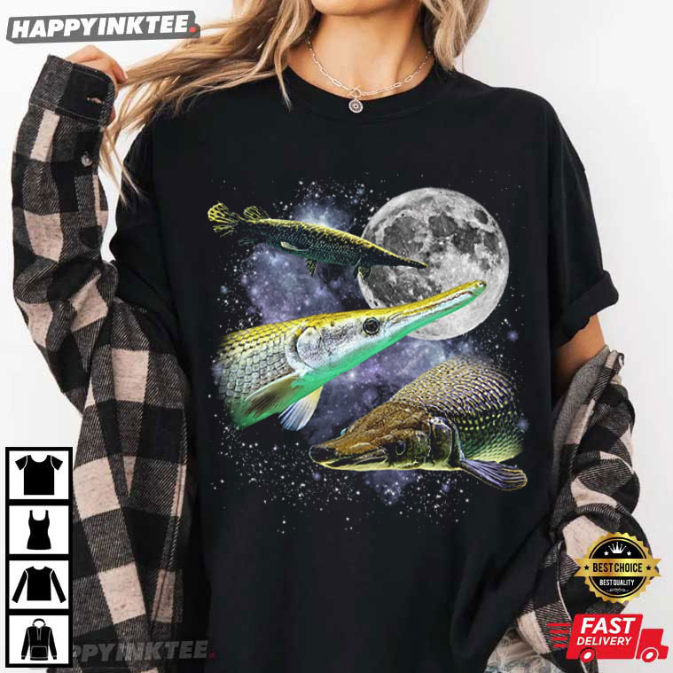 Three Alligator Gar Moon Atractosteus Spatula Galaxy Fish T-Shirt – vintage graphic t shirts, unique graphic t shirts