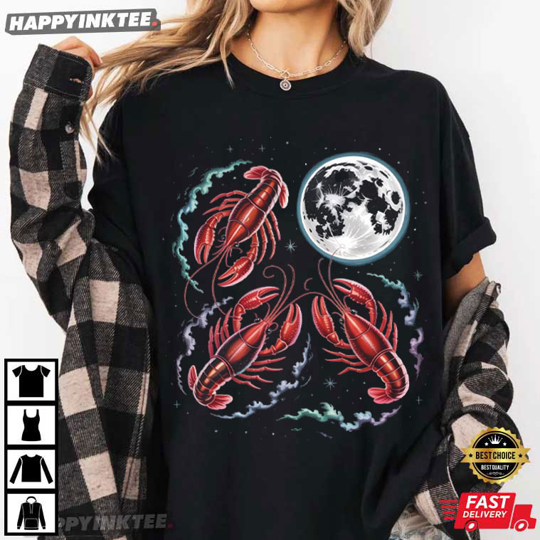 Three Crawfish Moon Galaxy Space Animal Lover T-Shirt – vintage graphic t shirts, unique graphic t shirts