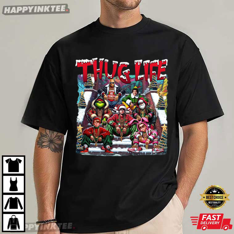 This Thug Life Christmas shirt combines all the festive chaos into one striking design if your favorite holiday ritual is rewatching beloved Christmas movies with a dash of humor. Our Thug Life Christmas Movie Heroes Funny Holiday T-Shirt features an over-the-top mashup of iconic Christmas movie characters, each reimagined with a playful “thug life” attitude—streetwear outfits, chains, shades, and all the swagger you’d never expect from holiday heroes.