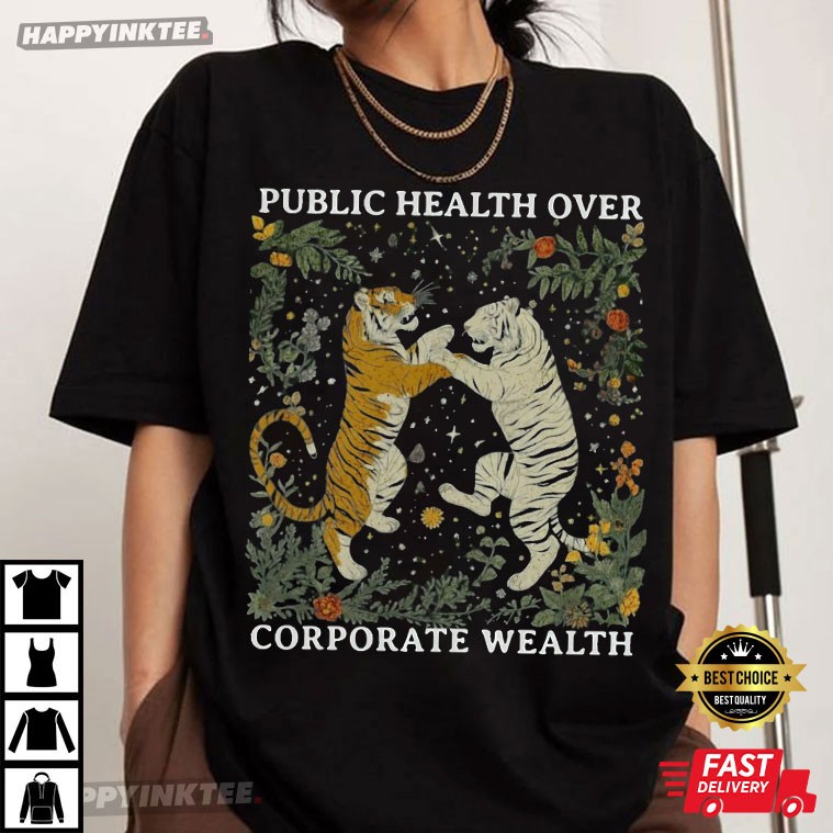 Tiger Boho Public Health Over Corporate Wealth T-Shirt – retro graphic t shirts, unique graphic t shirts, retro tee shirts, vintage 80s t shirts