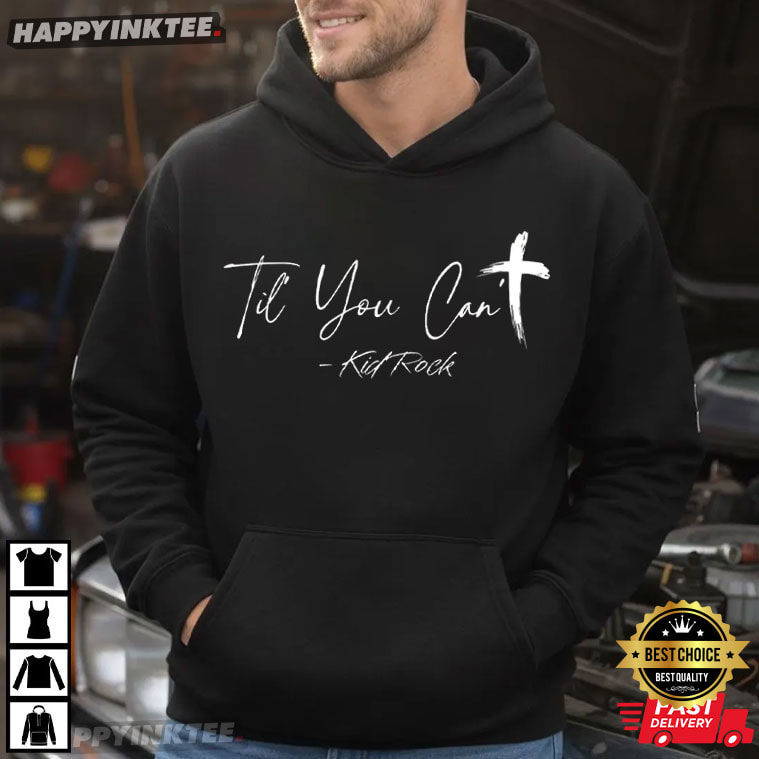 Faith-forward, bold, and rooted in country-rock attitude — the Til You Can’t Cross Kid Rock T-Shirt blends powerful lyric energy with a subtle Christian symbol. This Kid Rock t-shirt makes a statement that is both expressive and personal, inspired by the spirit of enjoying life to the fullest and remaining steadfast in one’s beliefs. If you connect with music that speaks about faith, freedom, and living without regret, this design captures that mindset perfectly.