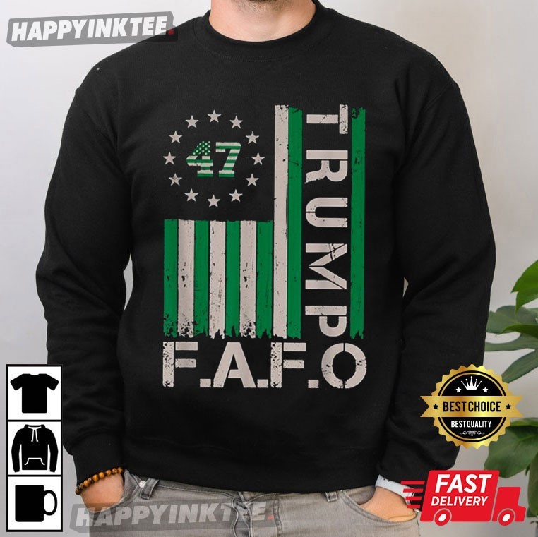 With a St. Patrick’s Day twist, show off your patriotism! For people who love America, this Trump FAFO 47th President US Flag St Patrick’s Day T-Shirt is perfect. “FAFO” (F* Around and Find Out)** is a colloquial and provocative phrase often used in internet culture and political discourse to convey a warning or assertiveness—implying that challenging or opposing Trump or his supporters could lead to consequences.