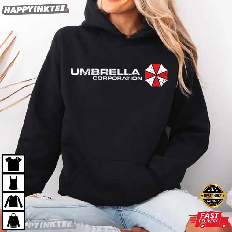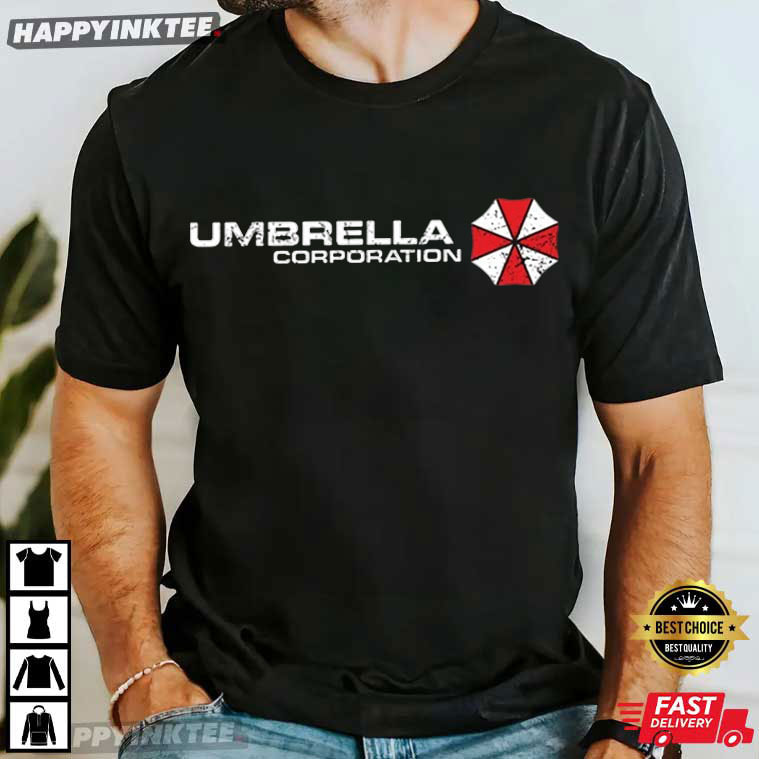 The Umbrella Corporation Resident Evil Video Gaming T-Shirt features one of the most iconic logos in gaming history — Recognized instantly by fans around the world, the red-and-white umbrella symbol represents the mysterious and powerful Umbrella Corporation, the fictional pharmaceutical company at the center of the Resident Evil storyline.