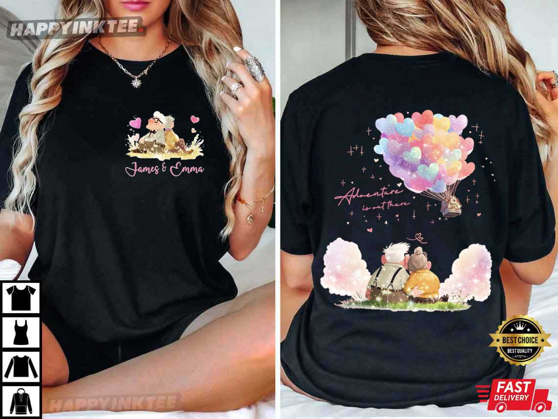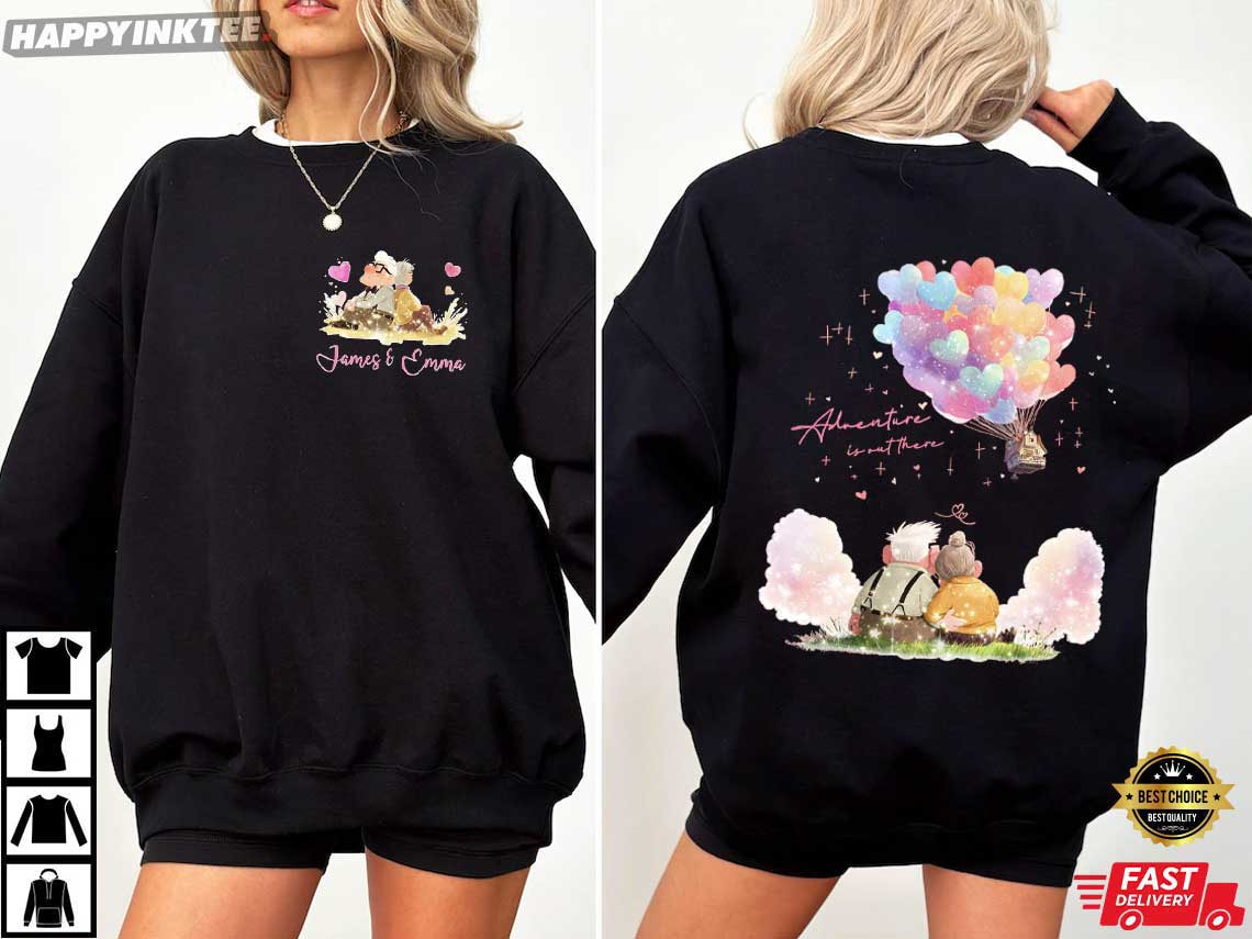 Valentine Balloon House Adventure Is Out There Custom Name T-Shirt – valentine graphic shirts, couples shirts valentines day, custom valentine shirts