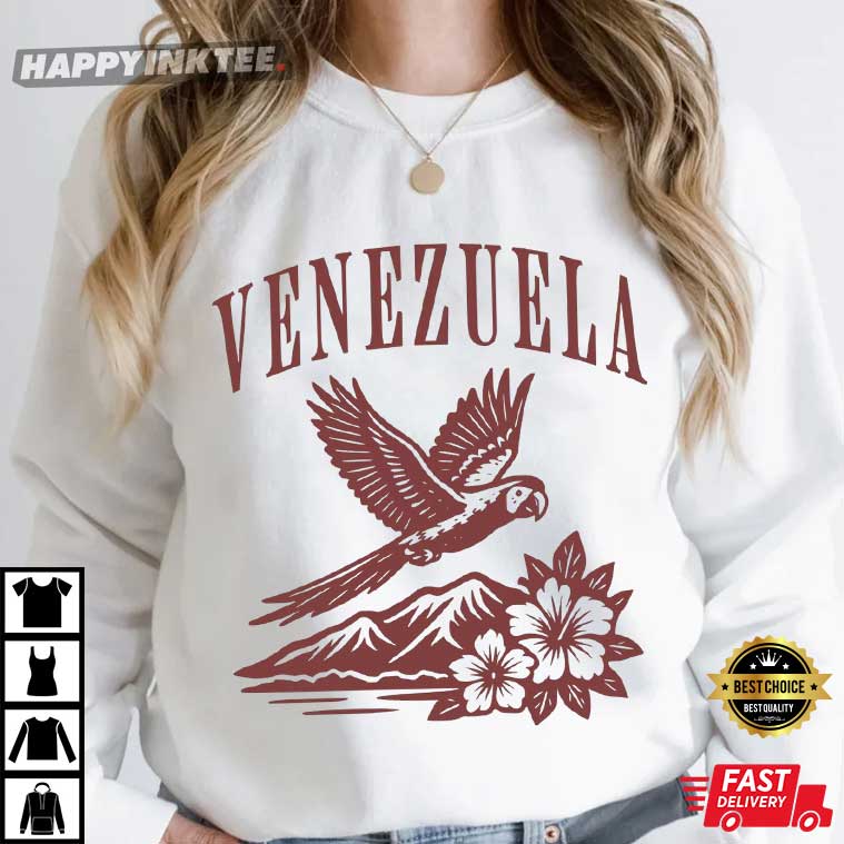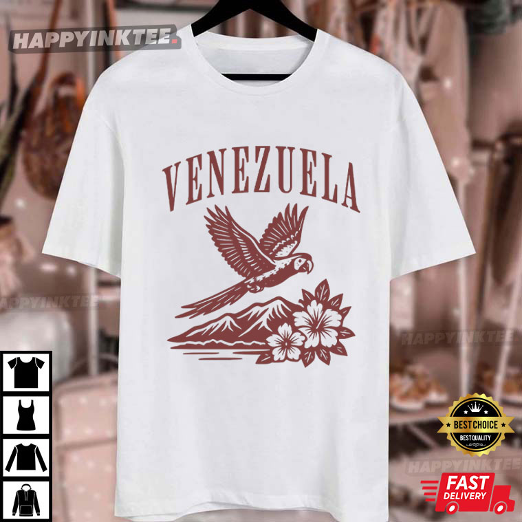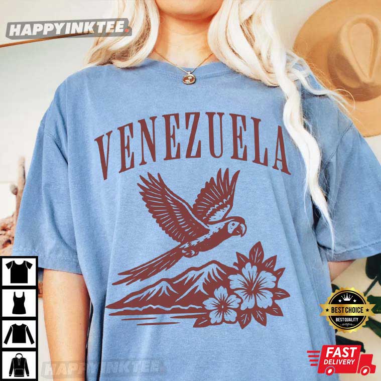 Check out this Venezuela Caribe Guacamaya City Gift T-Shirt and celebrate the beauty of Venezuela! It showcases a gorgeous guacamaya (parrot) soaring over mountains and tropical flowers, celebrating the lively Caribbean culture, wildlife, and landscapes that set Venezuela apart.