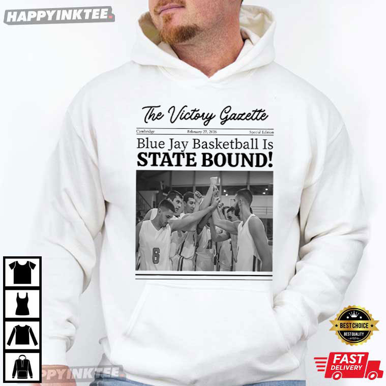 Victory Gazette Blue Jay Basketball Is State Bound Newspaper T-Shirt – basketball graphic t shirts, basketball team shirts, basketball t shirts for men, basketball fan tshirt, NBA graphic tees
