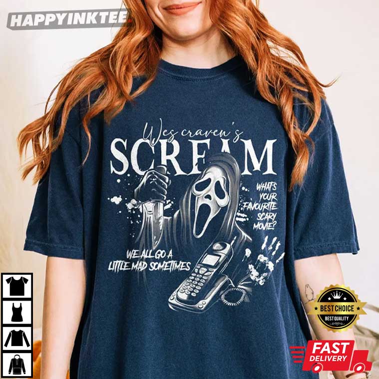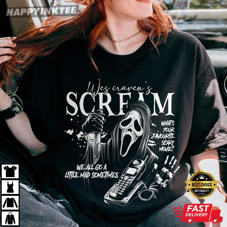 “What’s your favorite scary movie?” Get ready to feel the thrills of one of horror’s classic slashers with the Vintage Ghostface Halloween Scream Movie T-Shirt. It is great for horror fans who love cult classics, suspense, and killers in masks. It was inspired by Wes Craven‘s famous Scream movies.