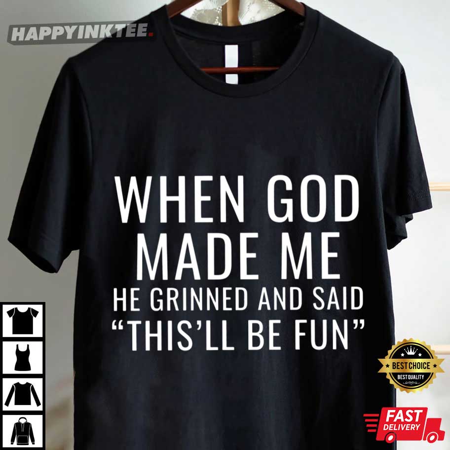 When God Made Me He Grinned And Said This’ll Be Fun T-Shirt – t shirt printing, custom tee shirts