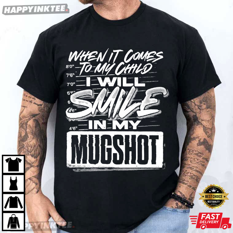 Being a parent can be a bit of a challenge, but parents will do anything to protect their kids. The When It Comes To My Child I Will Smile In My Mugshot T-Shirt totally nails that fierce parental love with its bold, edgy, and funny vibe.