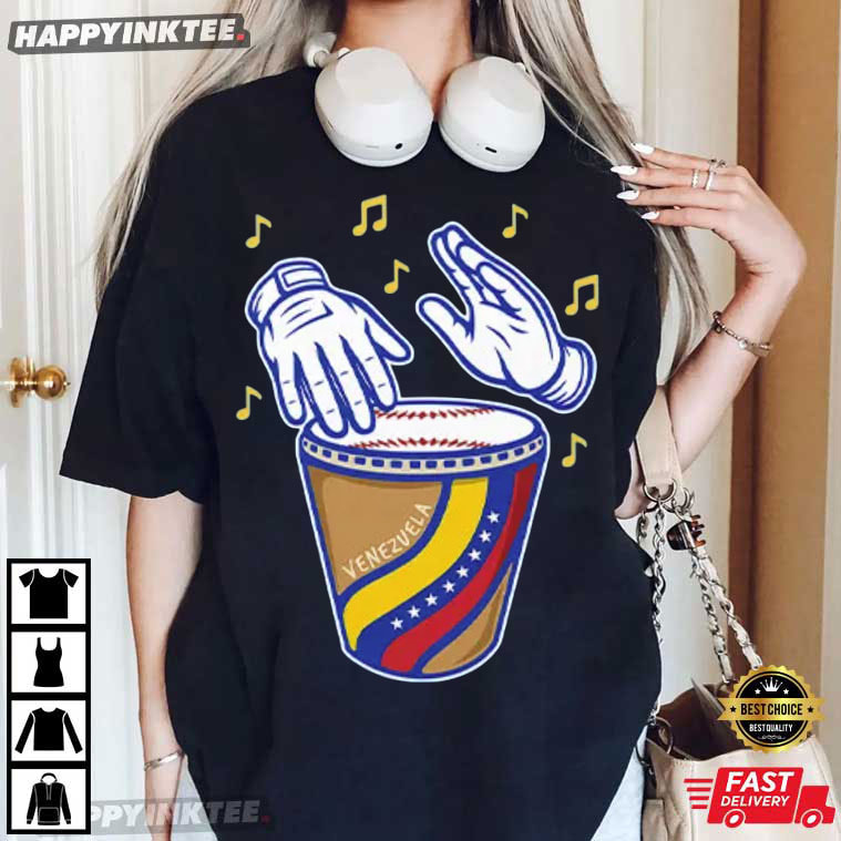 The Willson Contreras Tambor Béisbol Venezuela T-Shirt celebrates the passion, rhythm, and cultural pride that Venezuelan players bring to the game of baseball. Inspired by the unique dugout celebrations seen during international tournaments, the design combines strong Venezuelan musical traditions with baseball motifs.
