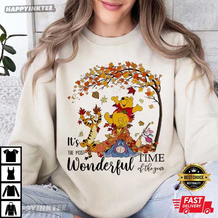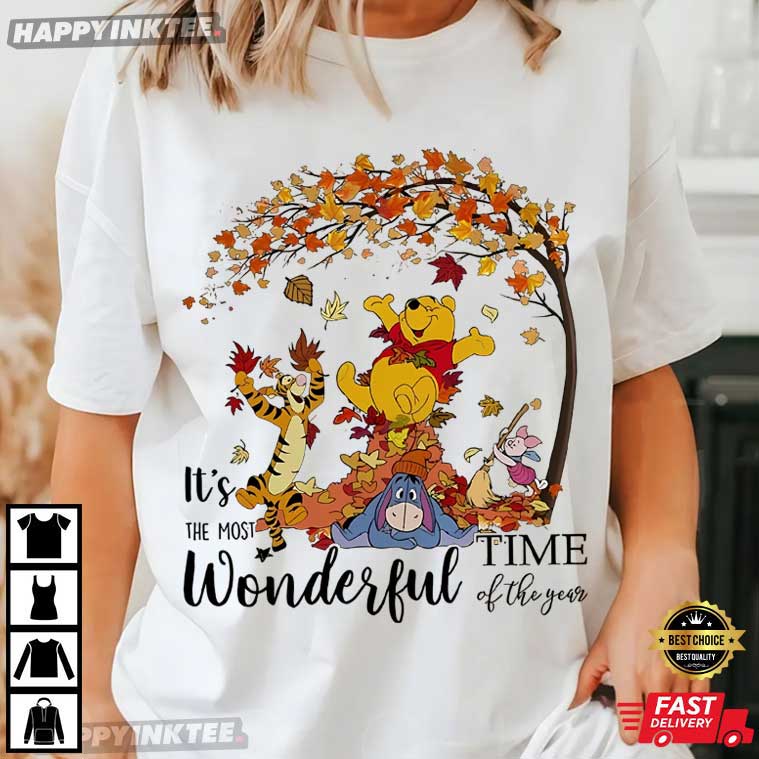 Winnie The Pooh Disney Autumn Most Wonderful Time Of The Year T-Shirt – cartoon shirt, animated graphic tees